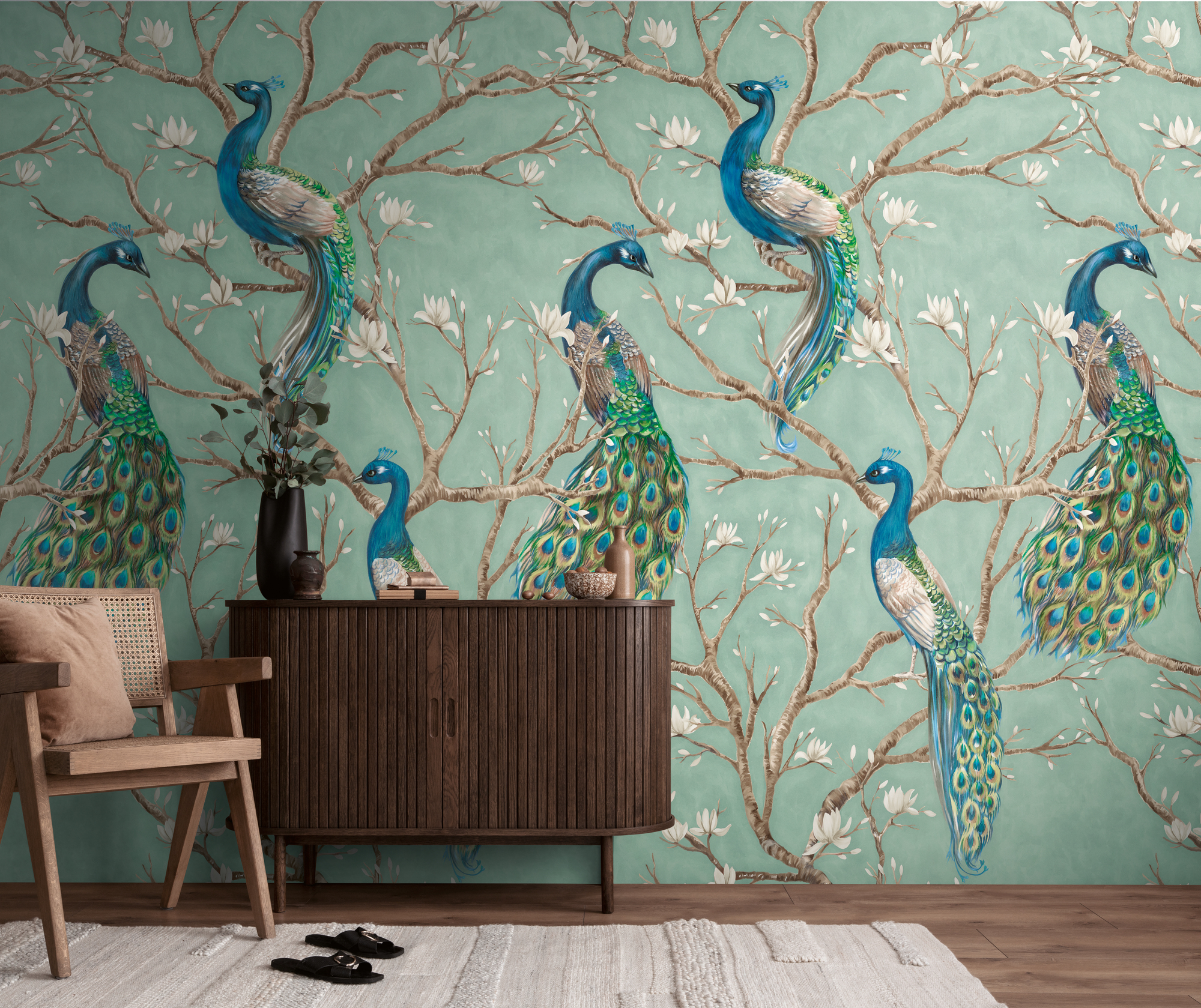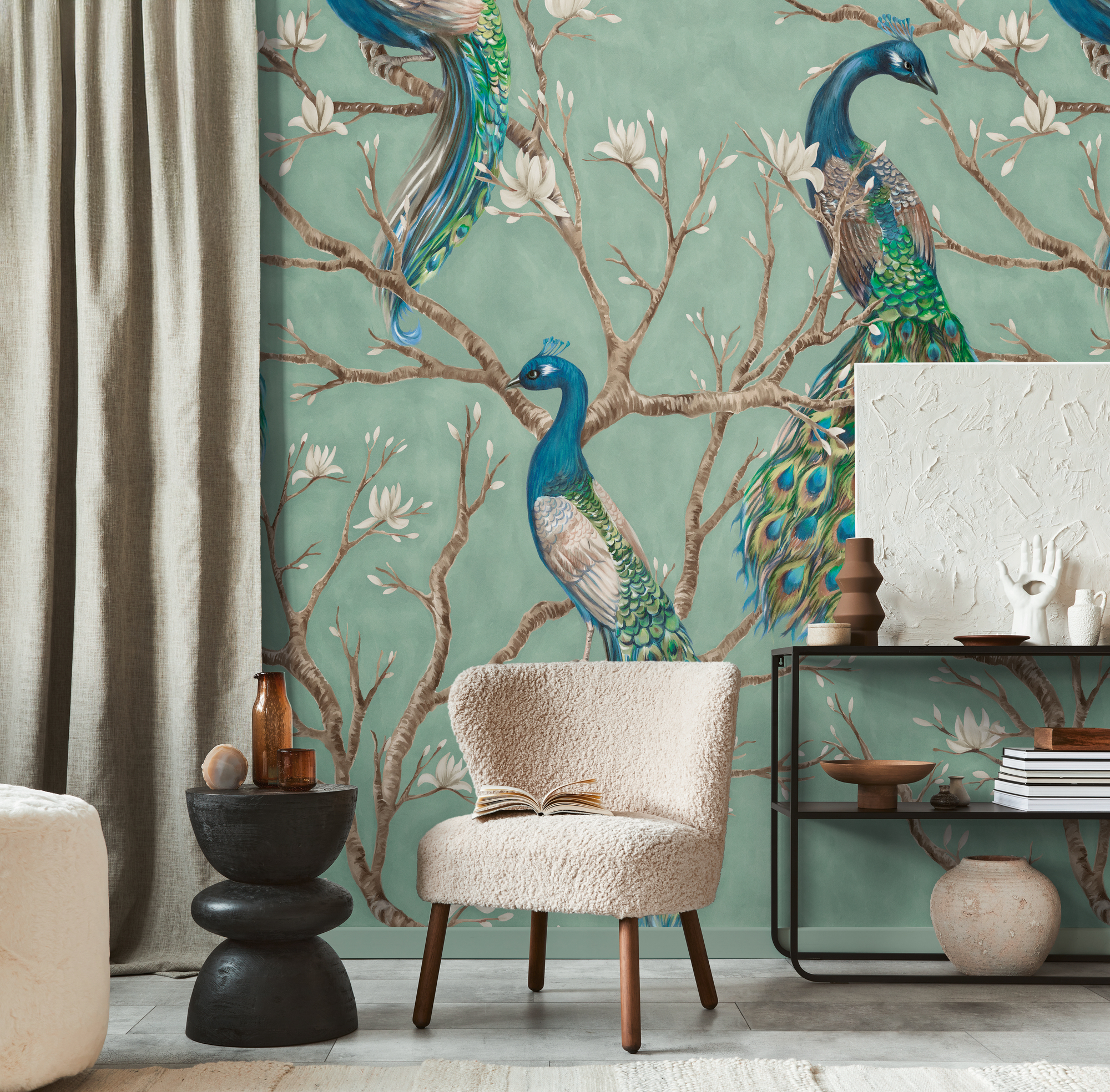79223-9 Панно AS Creation 159*280, Павлины в цветущем саду